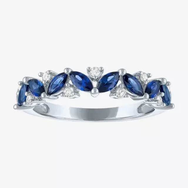 Modern Bride Gemstone Womens 1/10 CT. T.W. Lab Created Blue Sapphire 10K White Gold Wedding Band