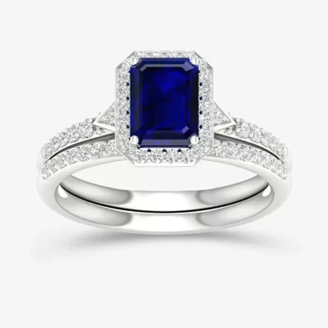 Modern Bride Gemstone Womens 1/3 CT. T.W. Genuine Blue Sapphire 10K White Gold Halo Bridal Set