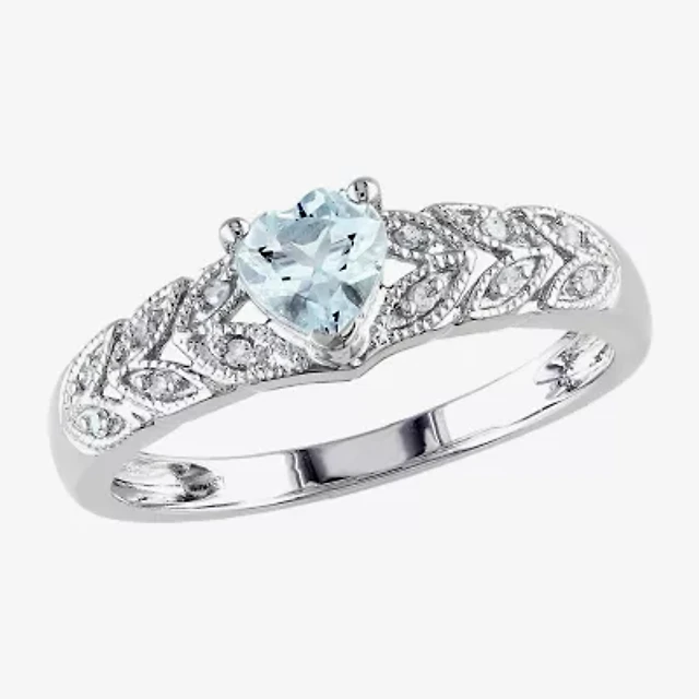 Modern Bride Gemstone Womens Diamond Accent Genuine Blue Aquamarine Sterling Silver Heart Promise Ring