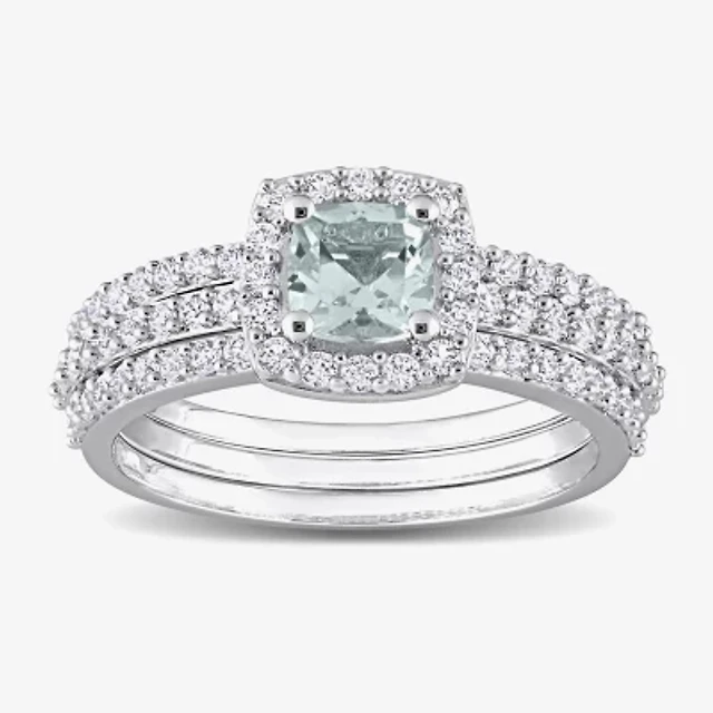 Modern Bride Gemstone Womens 1/3 CT. T.W. Genuine Blue Aquamarine 10K White Gold Cushion Halo Bridal Set