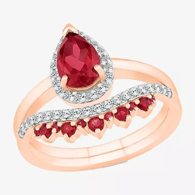Modern Bride Gemstone Womens Lab Created Red Ruby 14K Rose Gold Pear Bridal Set