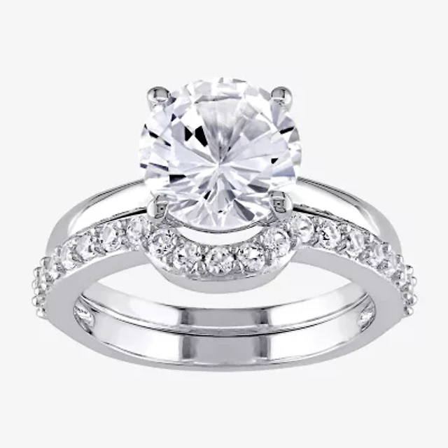 Modern Bride Gemstone Womens Lab Created White Sapphire 10K Gold Round Bridal Set