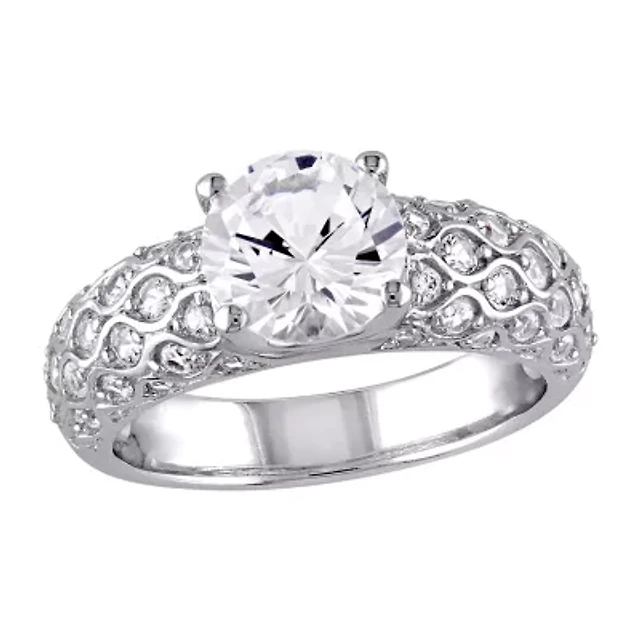 Modern Bride Gemstone Womens Lab Created White Sapphire Sterling Silver Round Side Stone Engagement Ring