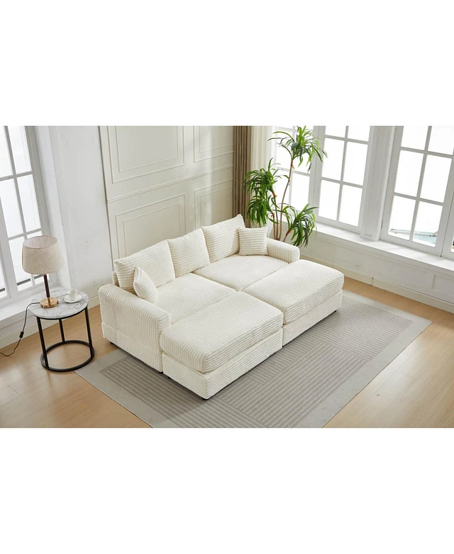 Streamdale 79" Corduroy Sofa with 4 Pillows, White