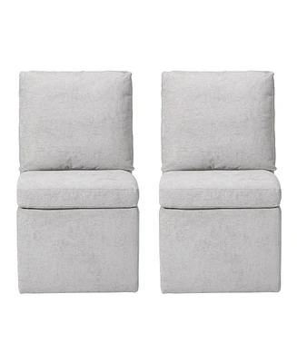 Modern Upholstered Chenille Armless Dining Chairs With Casters