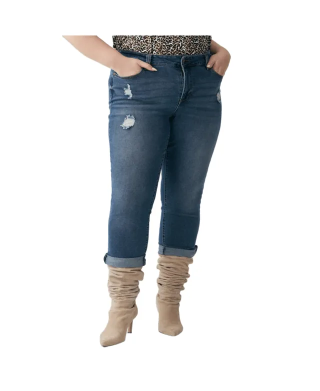 Democracy Plus Rolled-Cuff Boyfriend Jeans