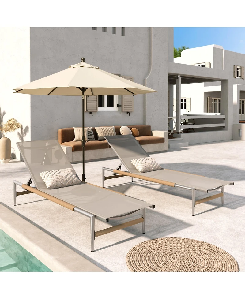 Mondawe 2-Piece Adjustable Patio Chaise Lounges with Aluminum Frame