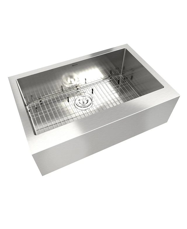Mondawe Farmhouse Apron Front 33-in x 22-in Brushed Stainless Steel Single Bowl Kitchen Sink