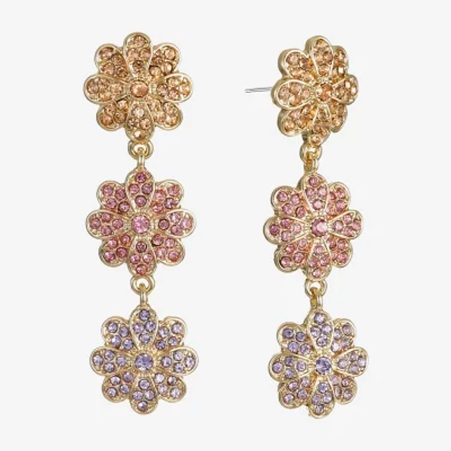 Monet Jewelry Halo Double Womens Pink Glass Heart Hypoallergenic Drop Earrings