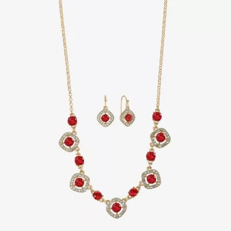 Monet Jewelry Gold Tone Collar Frontal Necklace & Drop Earring Womens Glass Cushion 2-pc. Jewelry Set