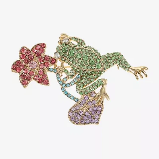 Monet Jewelry Gold Tone Frog Multi Color Glass Brooch