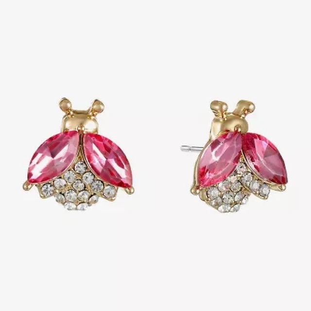 Monet Jewelry Gold Tone Ladybug Pink Glass 10mm Stud Earrings