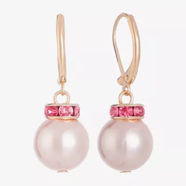 Monet Jewelry Gold Tone & Pink Womens Glass Simulated Pearl Drop Earrings