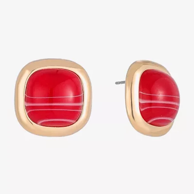 Monet Jewelry Gold Tone Red 19mm Cushion Stud Earrings