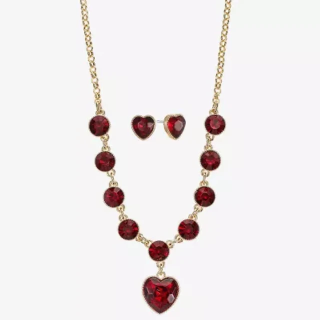 Monet Jewelry Gold Tone Womens Red Glass Heart 2-pc. Jewelry Set