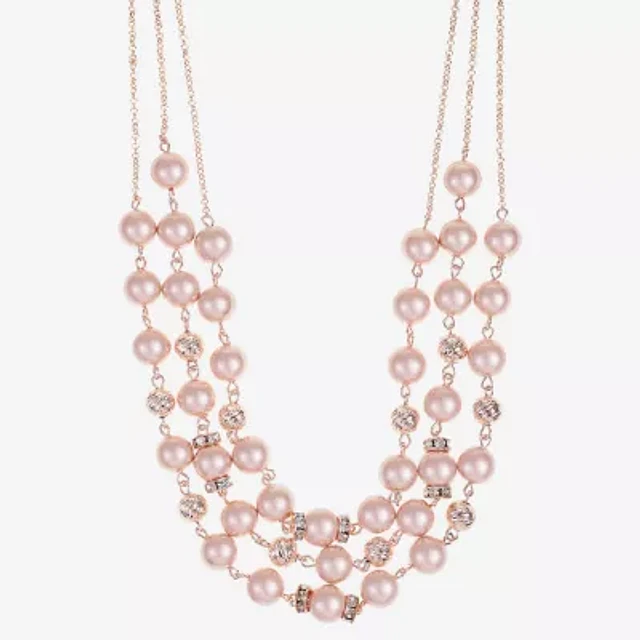 Monet Jewelry Rose Gold Layered Womens Pink Glass 22 Inch Strand Necklace