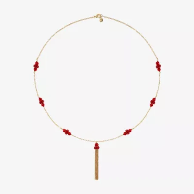 Monet Jewelry Tassel Womens Red 34 Inch Strand Necklace