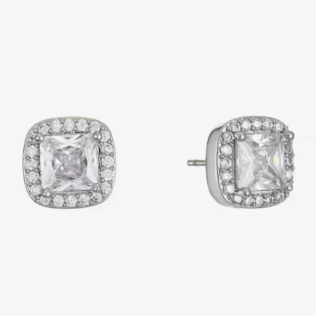 Monet Jewelry Timeless Silver Tone Cubic Zirconia 11mm Square Stud Earrings