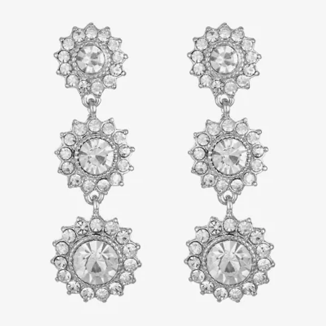 Monet Jewelry Timeless Silver Tone Linear Womens Glass Round Hypoallergenic Drop Earrings