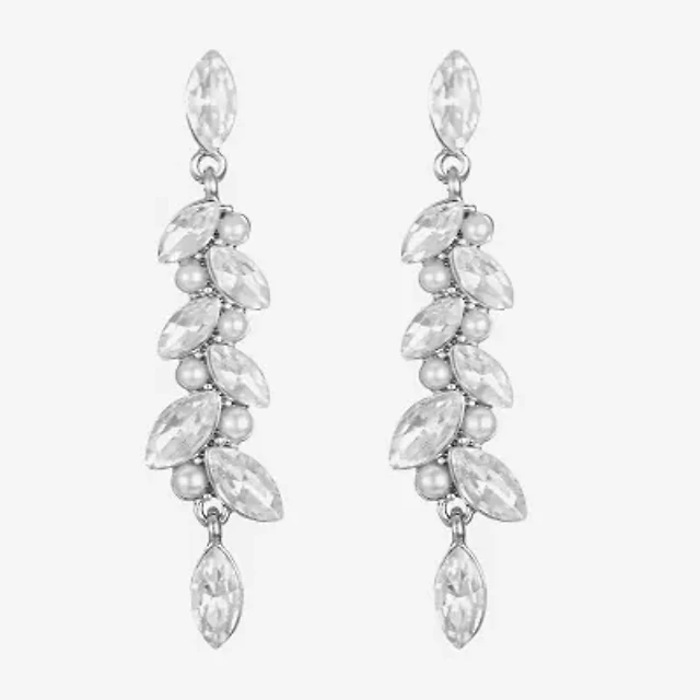Monet Jewelry Timeless Silver Tone Linear Womens Simulated Pearl Hypoallergenic Drop Earrings
