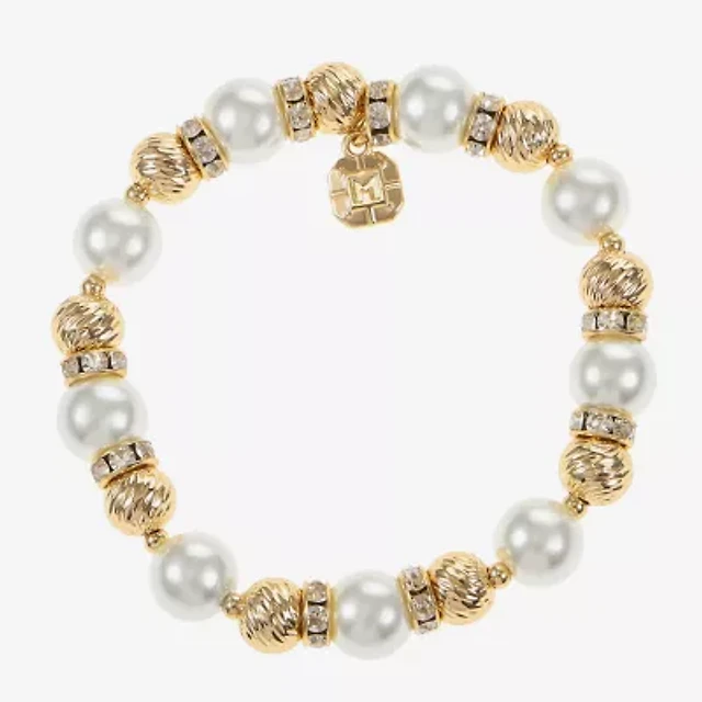 Monet Jewelry Gold Tone Womens Glass Simulated Pearl Stretch Bracelet