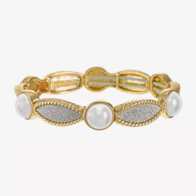 Monet Jewelry Gold Tone Twist Womens Glass Simulated Pearl Stretch Bracelet