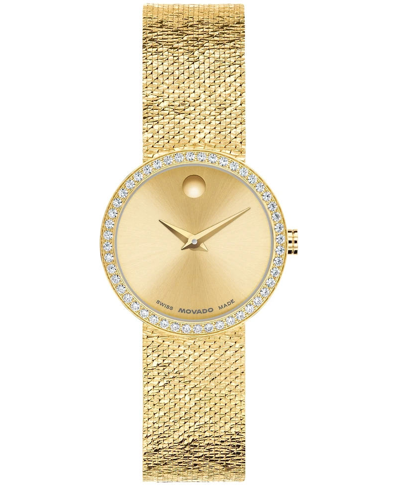 Movado Women's Museum Velura Lab Grown Diamond Swiss Quartz Light Yellow Pvd Steel Watch, 25mm