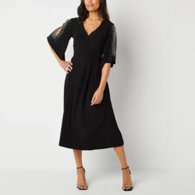 MSK 3/4 Beaded Sleeve Midi Fit + Flare Dresses