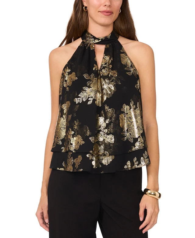 Msk Petite Floral Metallic Sleeveless Keyhole Top