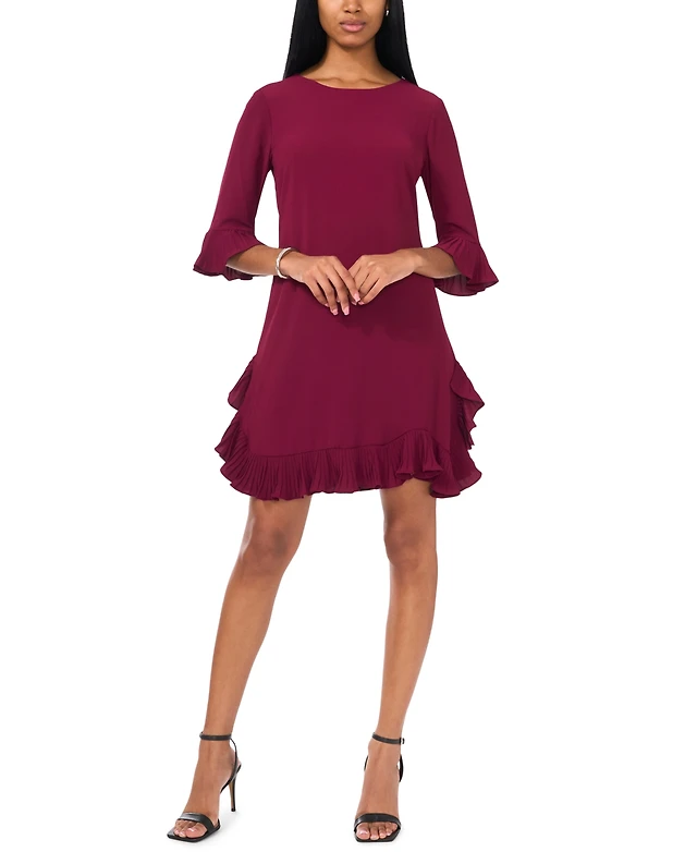 Msk Petite Spread-Collar Short-Sleeve Shift Dress
