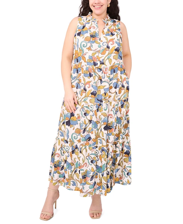 Msk Plus Printed Split-Neck Sleeveless Maxi Dress