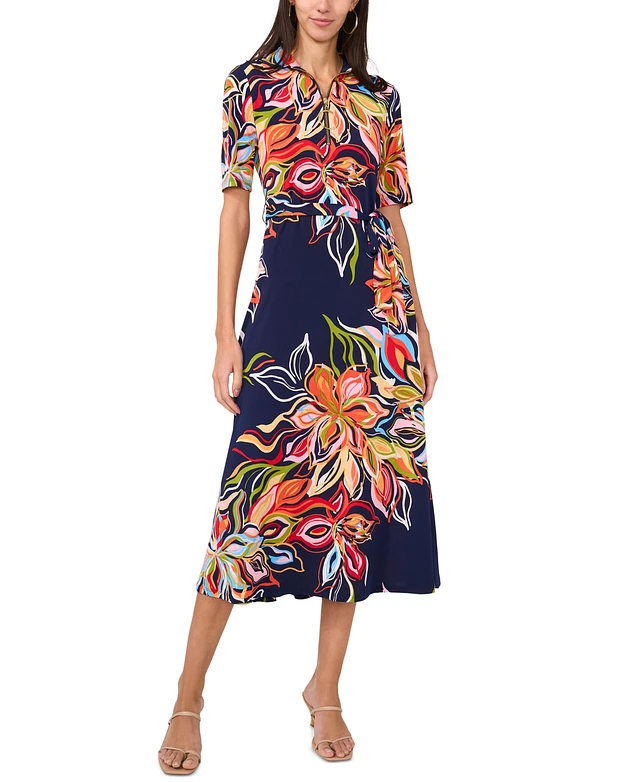 Vince Camuto Women's Short-Sleeve Tie-Waist Midi Dress