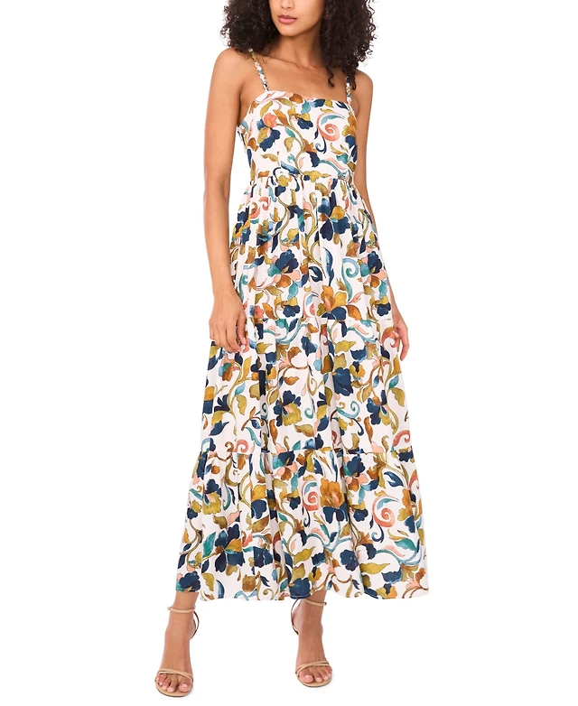 1.state Women's Printed Sleeveless Tiered Maxi Dress