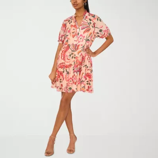 MSK Womens Short Sleeve Floral Plus Shirt Dress