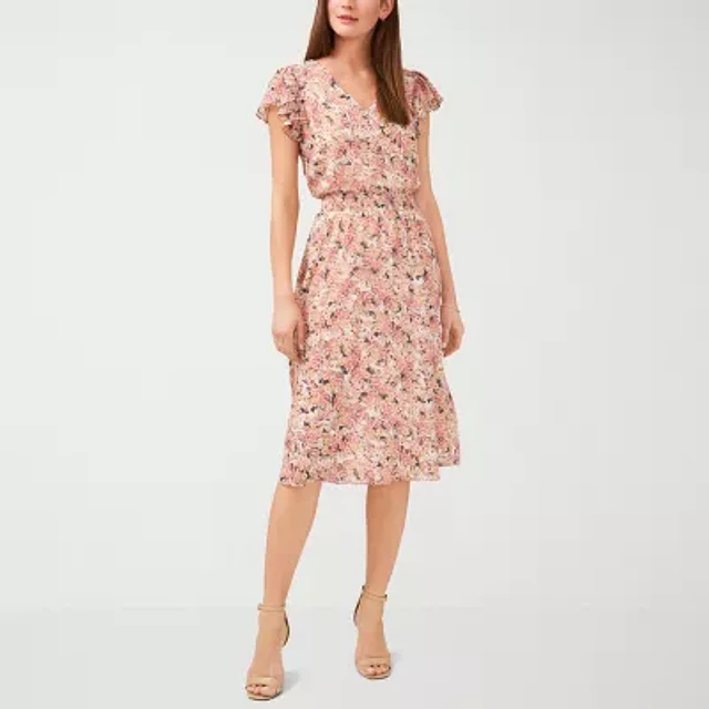 MSK Womens Short Sleeve Floral Midi Fit + Flare Dress