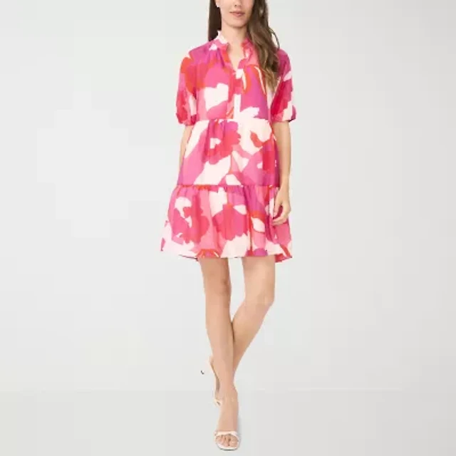 MSK Womens Short Sleeve Floral Midi Fit + Flare Dress