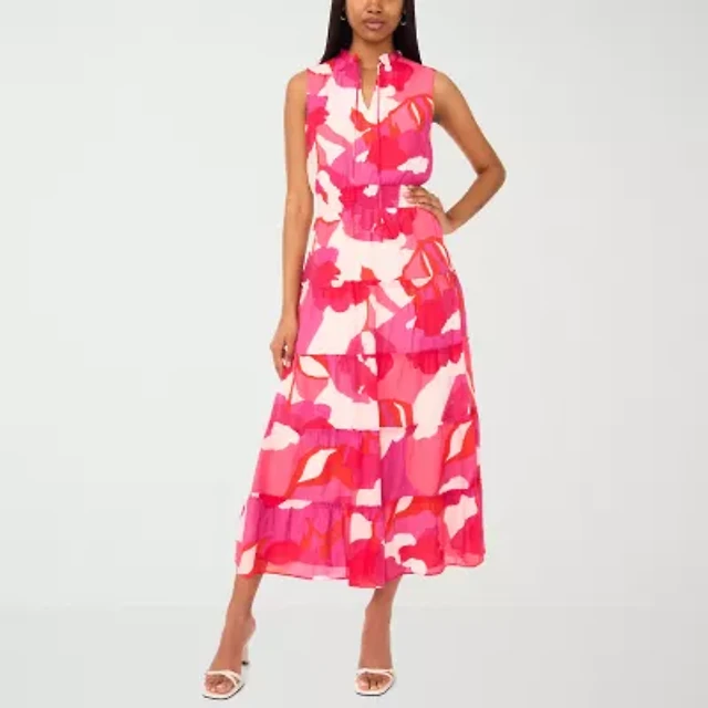 MSK Womens Sleeveless Midi Floral Shift Dress