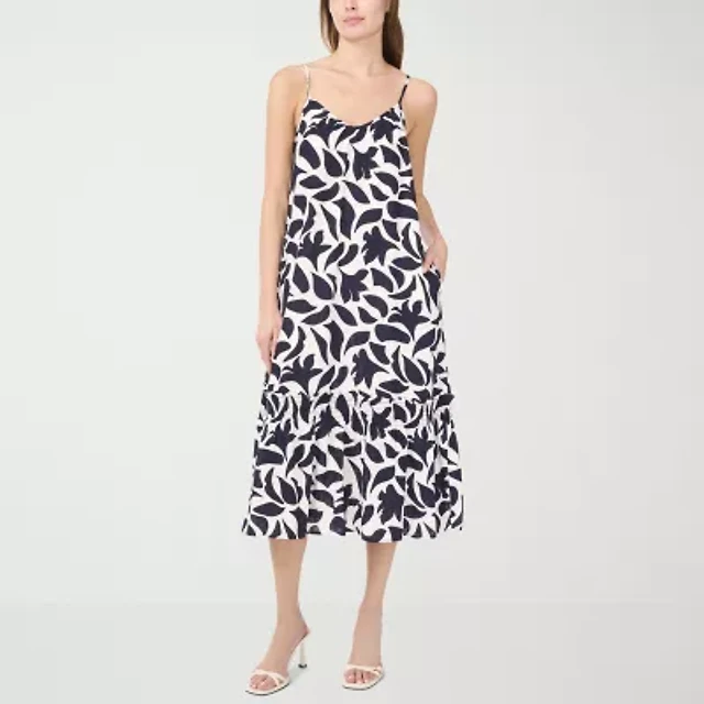 MSK Womens Sleeveless Midi Floral Shift Dress