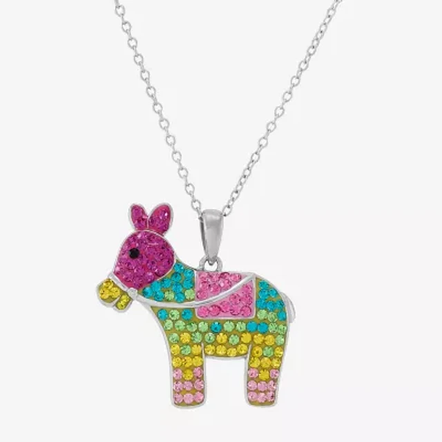 Mule Womens Multi Color Crystal Sterling Silver Pendant Necklaces