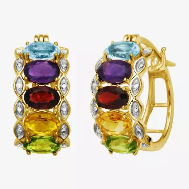 Multi-Gemstone and Diamond-Accent Hoop Earrings