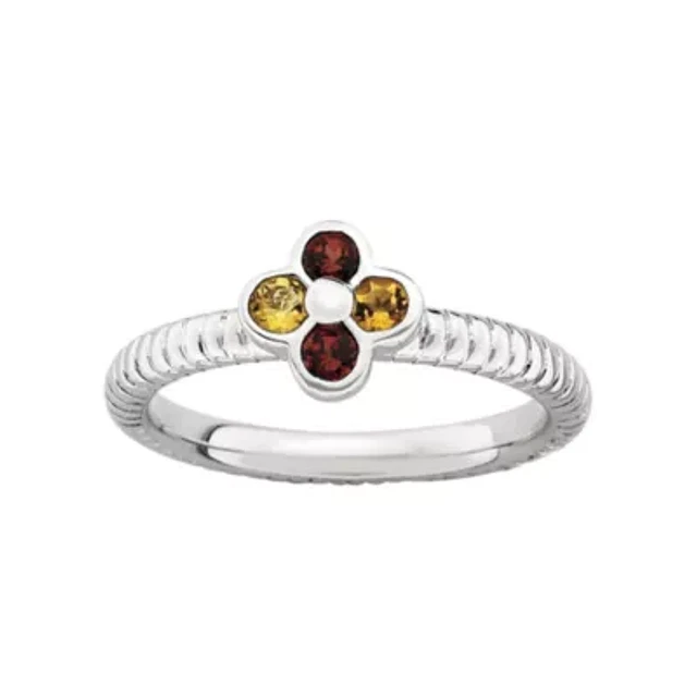 Multi-Gemstone Flower Stackable Ring