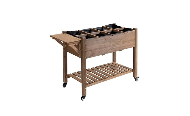 Wooden Raised Garden Bed with Wheels Trellis and Storage Shelf