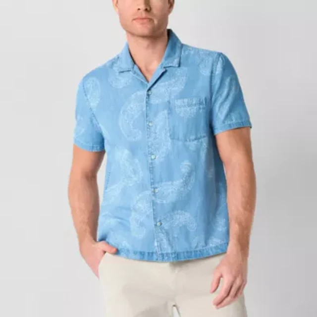 mutual weave Denim Mens Short Sleeve Camp Shirt