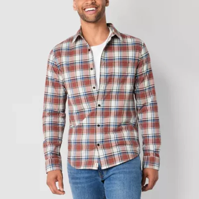 mutual weave Mens Regular Fit Long Sleeve Plaid Button-Down Shirt