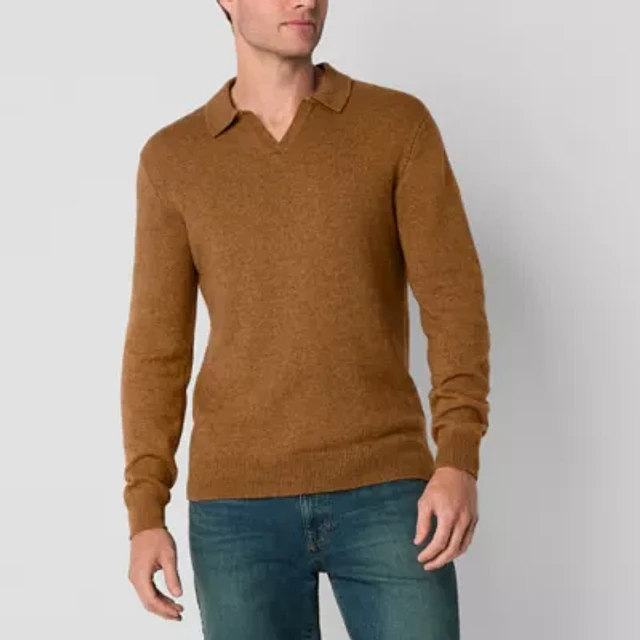 mutual weave Mens Regular Fit Long Sleeve Pocket Polo Shirt