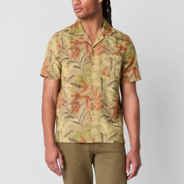 mutual weave Linen Blend Mens Short Sleeve Camp Shirt