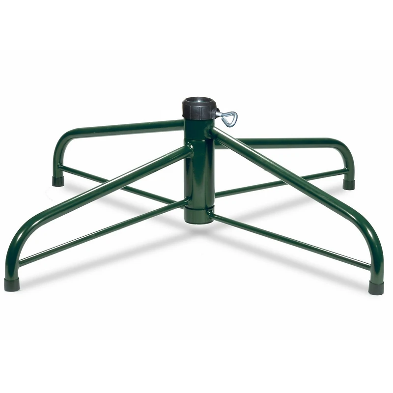 This folding metal tree stand is for use with 9 ft. to 12 ft. tall artificial trees with a 2"" diameter center pole. This stand features sturdy steel construction and folds flat for convenient storage. Includes thumb screw for securing stand to tree pole.