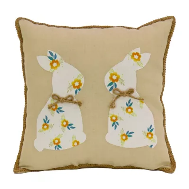 National Tree Co. Floral Bunny Easter Square Throw Pillow