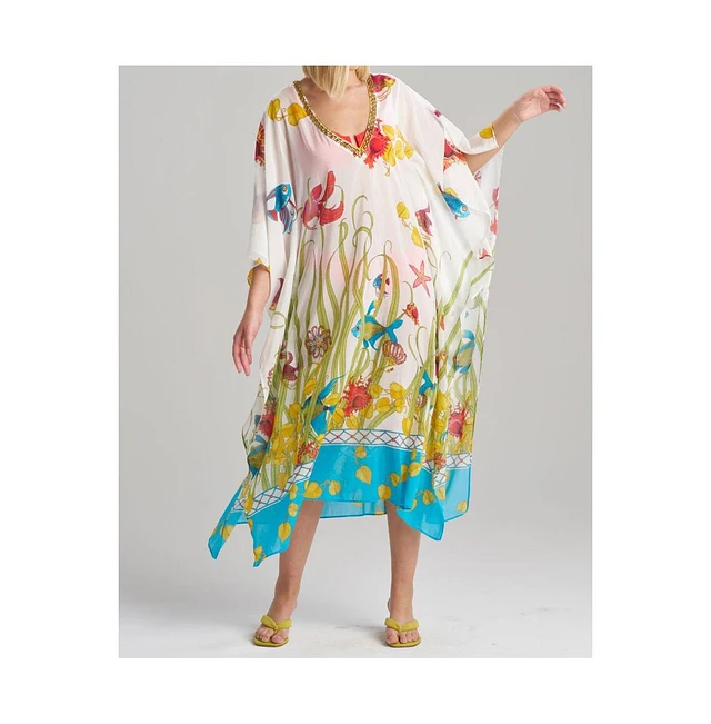 Natori Women's Aquatic Caftan with Beads