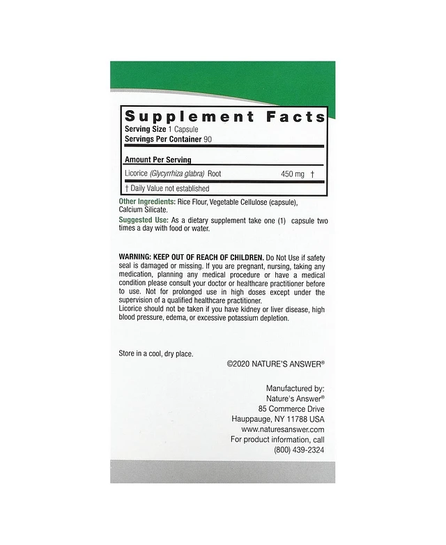 Nature's Answer Licorice 450 mg - 90 Vegetarian Capsules